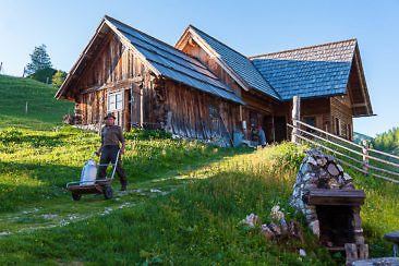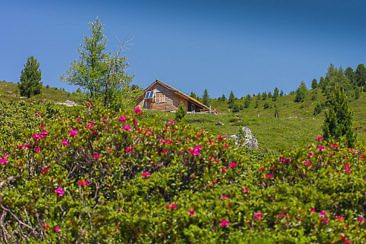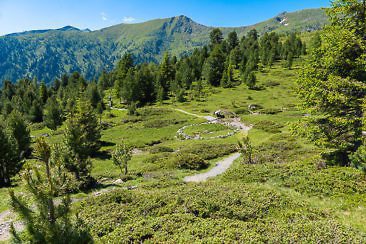 Für wen der Magische Moment “Wandern und baden im Biosphärenpark Nockberge” zeitlich nicht passt, der sollte trotzdem nicht verzagen: Ab Karlbad führt eine etwa 4-stündige, 7,7 km lange Rundwanderung (640 Höhenmeter) vorbei an Almwiesen durch die hügelige Bergwelt zum Gipfel des Königstuhls auf 2.336 m. An klaren Tagen bietet sich hier ein toller Weitblick auf die Südalpen, die Gurktaler Alpen und den Biosphärenpark Nockberge. Wieder zurück am Ausgangspunkt solltest Du im Karlbad bei legendären Kärntner Kasnudeln einkehren. Wer keinen der begehrten Übernachtungsplätze mit täglichem Zuberbad (Mitte Juni – Mitte September) ergattert, sollte im Untergeschoss der Hütte zumindest einen Blick auf die Lärchenholztröge werfen, in denen die Badezeremonie stattfindet.