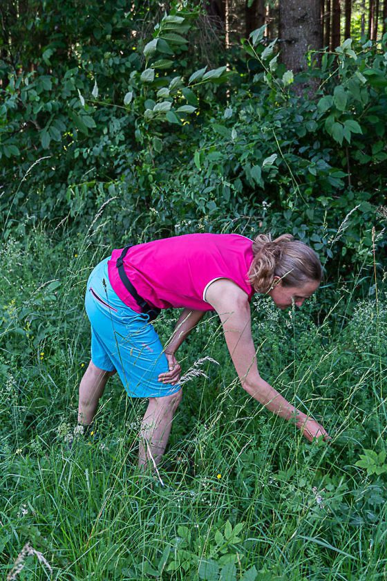 Kein magischer Moment aber ein ebenso lohnenswertes Erlebnis ist die Kräuterwanderung mit der Waldpädagogin Barbara Wiegele. Auf anschauliche Art bringt sie altes und neues Pflanzenwissen zusammen und nimmt uns mit auf einen Ausflug in die Wälder und Wiesen rund um den Faaker See. Ihre Mission ist es dabei, die Kärntner Natur- und Kulturlandschaft mithilfe von alltäglichen und essbaren Wildpflanzen aufzuzeigen und uns deren Verwendungsweise in Speisen zu erklären. Kräuterkunde zum Mit- und Nachmachen also. Am besten geeignet für das “Kräutern” sind dabei der Waldesrand oder naturbelassene Wiesen. Wir lernen unter anderem den Giersch kennen, welcher jung am besten im Pesto oder Kräutersalz und alt im Apfelsaft zum Einsatz kommt, das echte und Wiesen-Labkraut, welches mit dem Waldmeister verwandt ist und das Berufkraut, welches als Pfefferersatz dienen kann. Es ist ein tolles Gefühl, in Wald und Wiese Essbares zu finden und bestimmen. Normalerweise endet die Kräuterwanderung mit einem Waldbuffet, bestehend aus Kräuterquark mit selbst gesammelten Kräutern, einem Kärntner Speck, Käse und Bauernbrot. Da wir erst vom Essen kommen und eine Privatführung genossen haben, stellen wir uns unser eigenes Kräutersalz aus unseren Funden zusammen. Ein tolles Mitbringsel und eine schöne Erinnerung an ein eindrückliches Erlebnis!