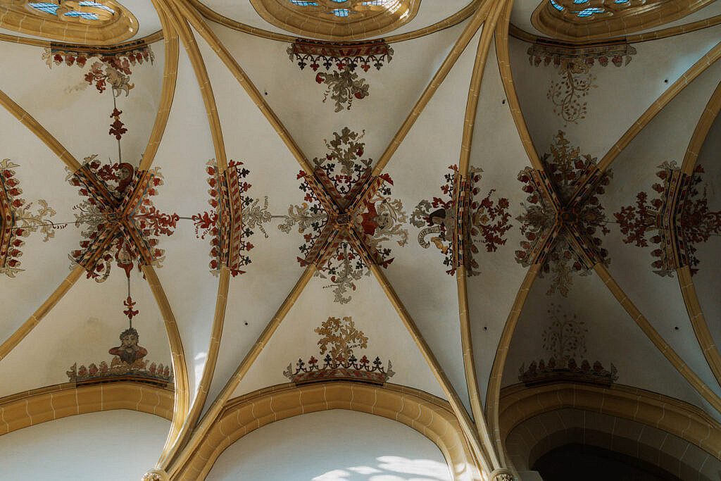 - Burgerzaal: Bürgersaal aus dem Jahr 1452 mit gotischen Kreuzfenstern in der Vorderfassade und Klosterfenstern in der Seitenfassade und einer beeindruckenden Decke.