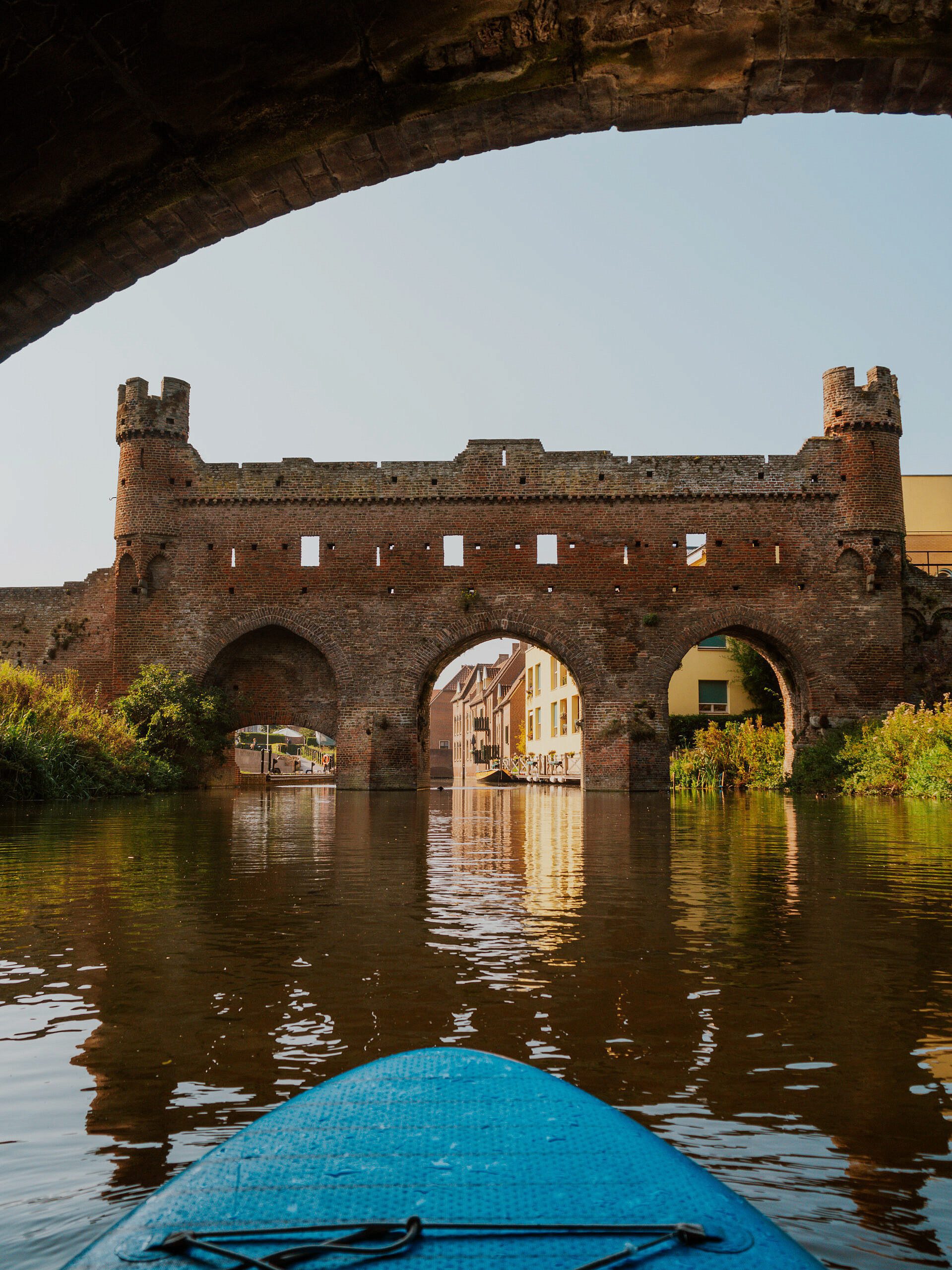 Lust auf einen Perspektivenwechsel? Schwing Dich auf ein SUP-Board oder ins Kanu und erkunde Zutphen vom Wasser aus. Zutphen hat viele kleine Wassersträßchen, die Dich je nach Geschmack durchs Zentrum oder eher ins Grüne bringen. Berkelfun stattet Dich mit aller nötigen Ausrüstung (wie Kanu/ SUP/ Paddel und Tonnen für Wertsachen) für Deine SUP- oder Kanutour aus und verrät Dir die besten Routen. Ich habe meine Tour und den anderen Blick auf die Stadt vom Wasser aus sehr genossen. Mein Highlight war die Fahrt durch das Wassertor Berkelpoort. Wer als Team kommt, kann übrigens auch ein XXL-SUP für 6 Personen mieten. Sicherlich ein Riesenspaß!